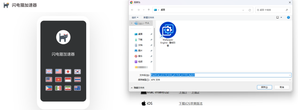电脑下载:点击 Windows 后方的【下载1】或【下载2】,可直接弹出另存为窗口,点击保存即可。