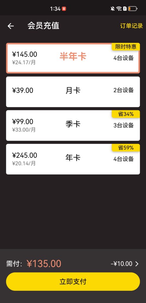 对于长期用户来说,直接购买半年卡、年卡能够享受到更大的折扣力度,但即便如此,月均价依然高于市场上其他类似产品。