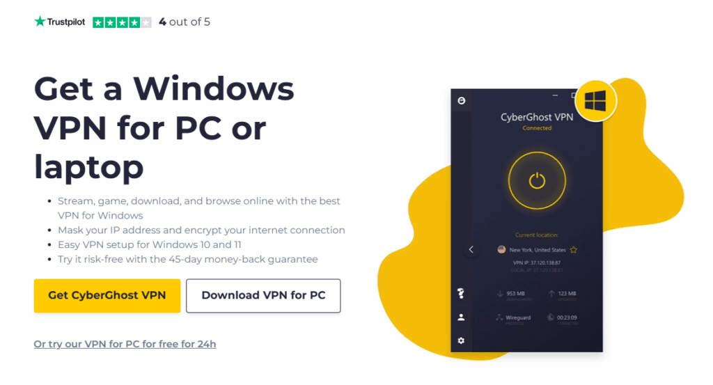 电脑下载:点击【Windows】图标,即可直接下载 Cyber Ghost 的电脑安装包。