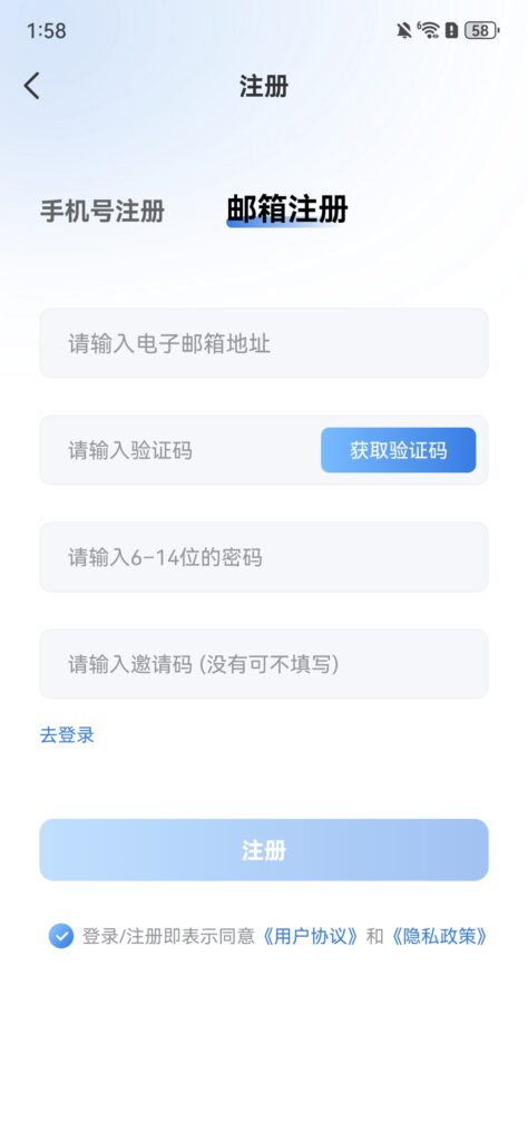 在使用加速器之前,你需要先注册一个个人账号,你可以通过手机号注册或通过邮箱注册,获取对应的验证码,注册成功后使用该账号登录,开始使用。