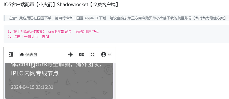 苹果系统由于其特殊性,它的配置方法会相对更加复杂也更加严格,在某些步骤上需要用户谨慎操作,由于涉及账号密码,在此处我们就不再多赘述,大家可以在飞天猪后台内找到详细的图文流程,进行操作。