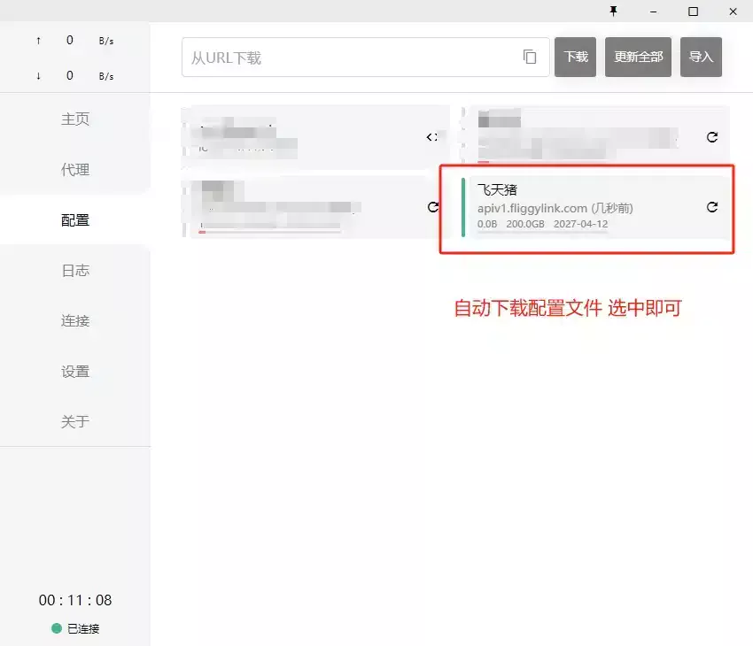 回到 Clash 客户端,点击配置,在输入框粘贴刚才复制的链接,点击下载。