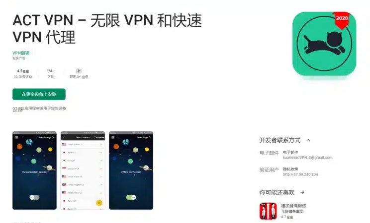 在 Google Play 应用商店内下载安装好快喵加速器即可开始使用,无需注册。