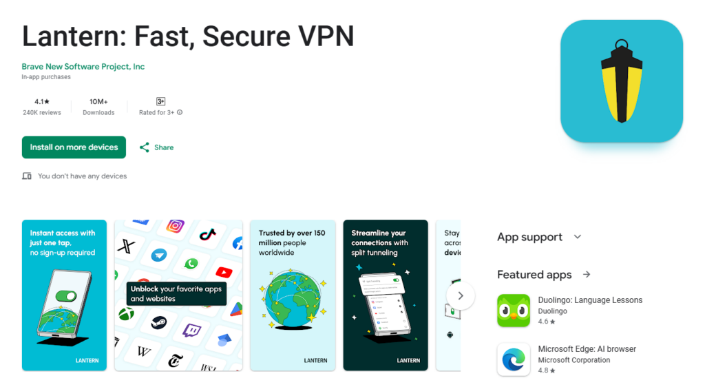 蓝灯加速器官网域名为getlantern.org,提供各个设备的应用程序,Android、iOS、Windows、Mac 都可以下载安装,支持多平台使用。