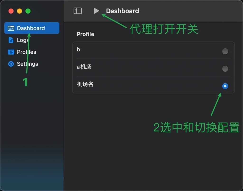 选中下方的 Profiles,然后点击添加按钮,添加订阅: