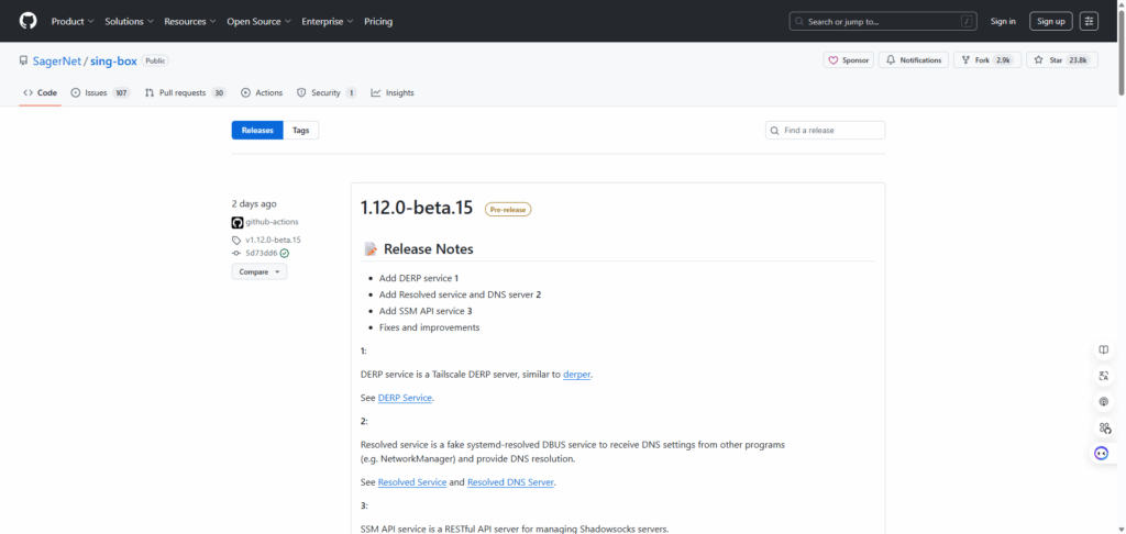 Sing-box GitHub 仓库下载地址:https://github.com/SagerNet/sing-box/releases。