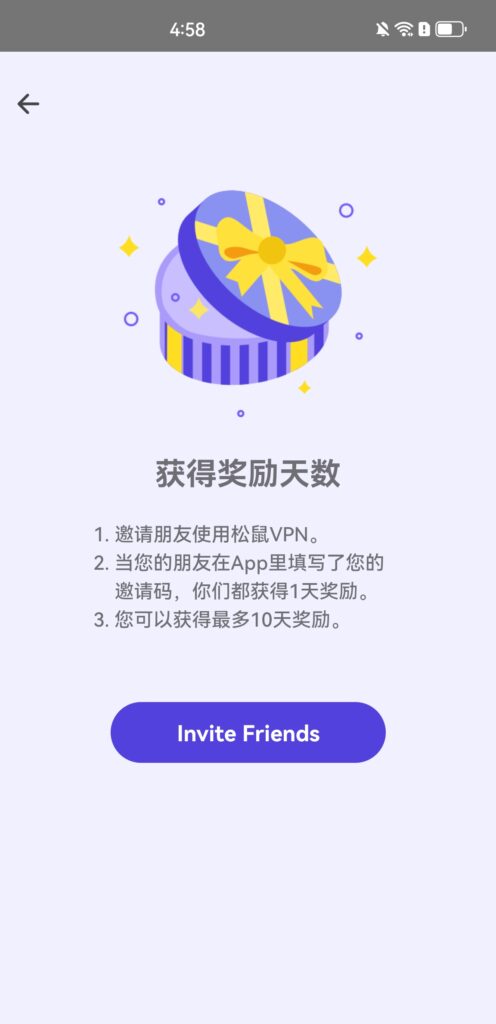 在这1天之后,如果你仍然想获取免费机会,就需要为松鼠加速器做推广拉新,至多可再获取10天免费服务。这种免费获取渠道显然是比较困难的,因此这里我们不再多做分析。