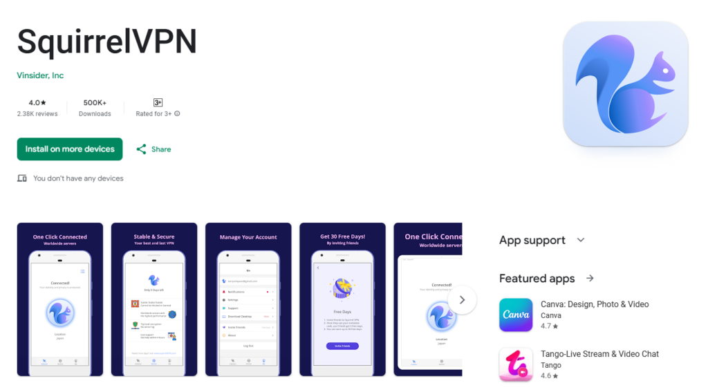 松鼠加速器官网域名为squirrelvpn.com,Android、iOS、Windows、Mac 都可以下载安装,支持多平台同步使用。