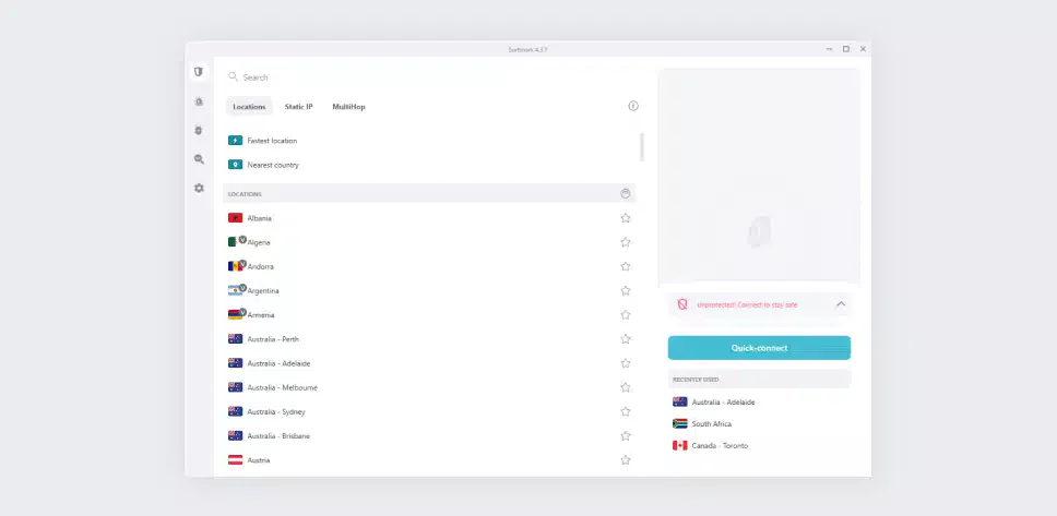 使用方面,Surfshark 的安卓端应用与电脑端应用使用流程基本一致,这里我们以 Windows 端口为例。