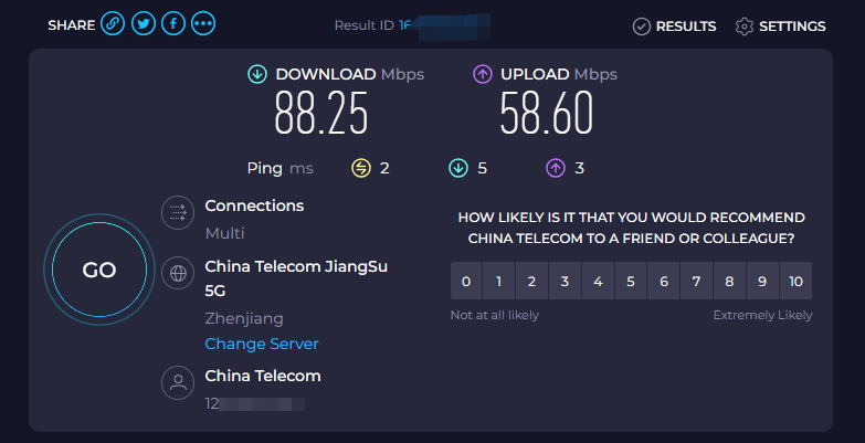 上传速度:58.6 Mbps 的上传速度也很不错,适合进行大文件上传、视频会议和在线直播等活动。一般情况下,上传速度在 5 Mbps 以上就能满足日常需求,而 58.6 Mbps 则能够支持高质量的视频上传和实时互动。