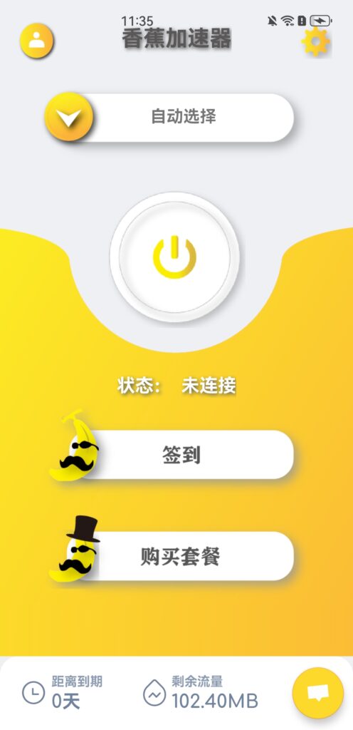 使用注册成功的账号进行登录,进入香蕉加速器首页,点击上面按钮,即可启动加速器连接,再次点击,即可关闭。