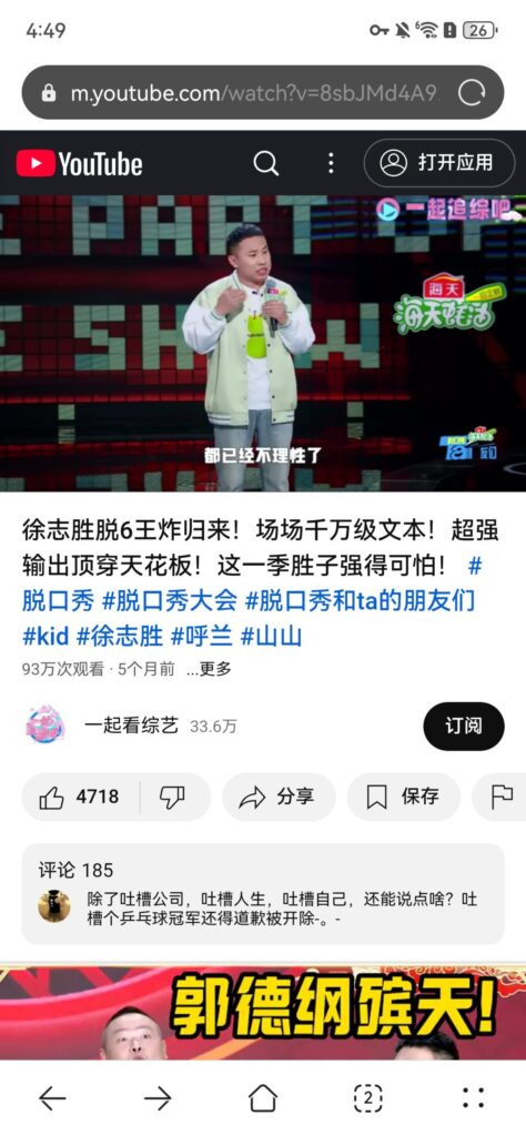 但在点击某一视频进行全屏播放时,我们观察到,YouTube 根据我们的网速所自动匹配的画质仅有 360P,这与我们的网络测速结果不太相符,我们认为可能有以下几种原因: