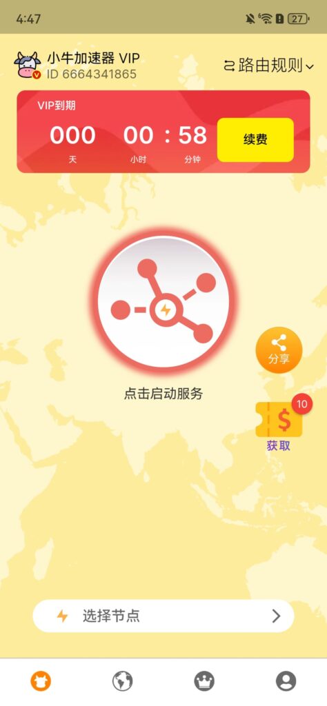小牛加速器的安卓端与电脑端的使用流程基本一致,此处我们以安卓端为例。