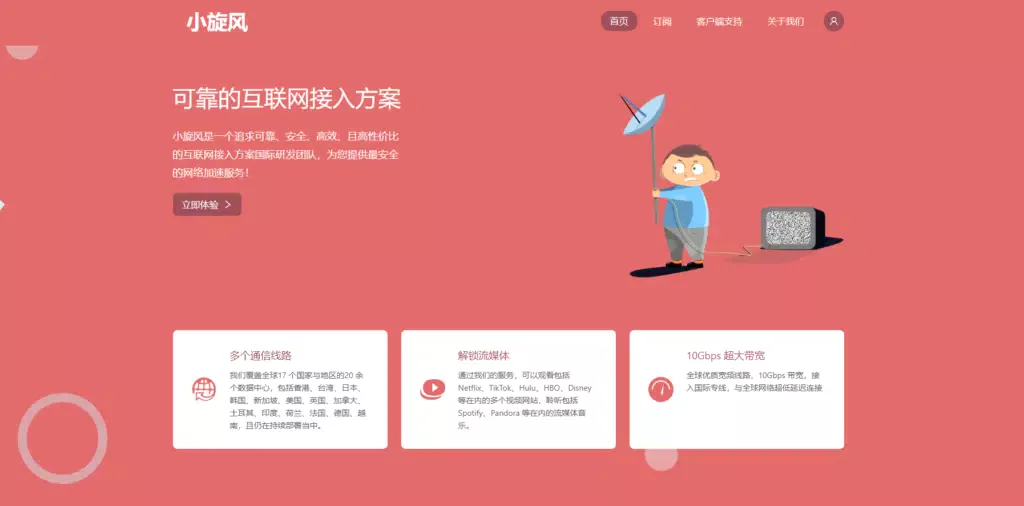 小旋风是一家于2024年新开业的高端机场,提供全节点 IPLC 专线服务,支持 Trojan 协议,并实现三网优化和智能负载均衡。该机场根据不同用户的本地网络情况,智能分配最适合的入口和线路。小旋风机场在解锁 Netflix、Disney+、TikTok 和 ChatGPT 等流媒体服务方面表现优异。