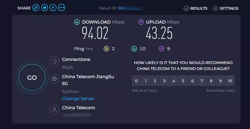 上传速度:43.25 Mbps 的上传速度在一般家庭用户中也表现良好,能够满足大多数日常需求,包括文件上传、视频会议和在线备份等。然而,对于需要频繁上传大型文件的专业用户或企业,可能会感到稍显不足。
