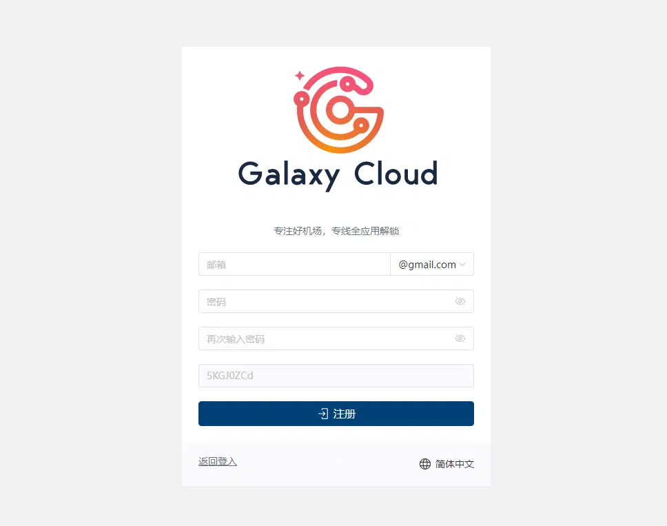 银河云提供各个端口的应用程序下载,包括 Android、iOS、Windows,点击下方按钮即可跳转到官网,在官网首页填写邮箱账号、设置密码、二次输入密码,并点击注册。